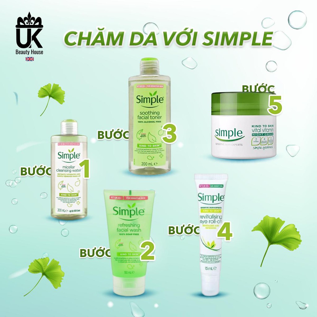 [Mã SKAMPUSH10 giảm 10% đơn 200K] COMBO LÀM SẠCH SIMPLE TẨY TRANG + SỮA RỬA MẶT + NƯỚC HOA HỒNG free ship