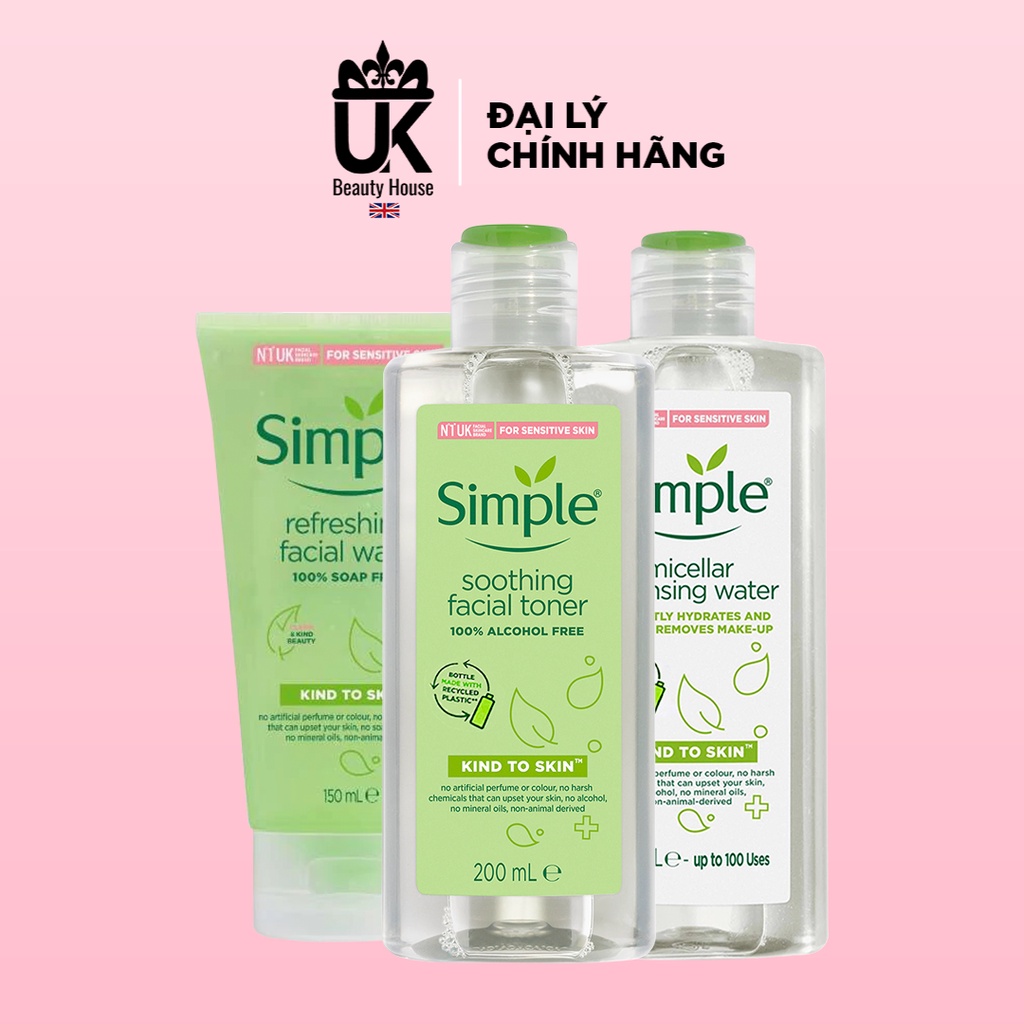 Freeship- [Mã SKAMPUSH10 giảm 10% đơn 200K] COMBO LÀM SẠCH SIMPLE TẨY TRANG + SỮA RỬA MẶT + NƯỚC HOA HỒNG mua tại đây