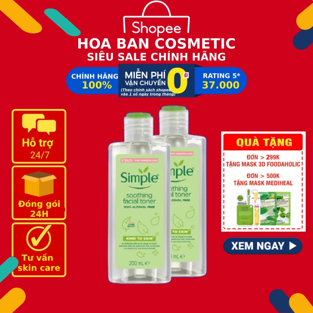 Freeship- NƯỚC HOA HỒNG SIMPLE Toner 200ml - làm dịu và cân bằng độ ẩm cho da - lành tính không chứa cồn mua tại đây