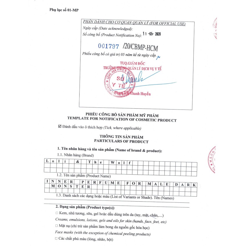 Nước hoa vùng kín nam Loli The Wolf hương thơm nam tính Dark Monster chai 2ml nhỏ gọn tiện lợi free ship